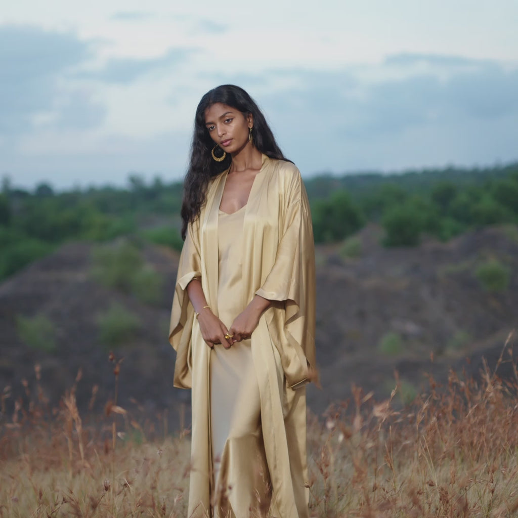 Silk pieces by AYA Sacred Wear are crafted from naturally sourced silk , hand-worked and botanically dyed using plants , roots, and minerals.Each garment carries a quiet strength - fluid, breathable, and timeless - shaped through slow artisanal processes that honor both the body and the earth.